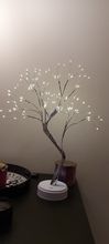 Delivery month. Looks nice. Branches easily accept and retain the desired shape. The number of branches and diodes is enough to show imagination and give the tree the desired look. Powered by USB or from three AA batteries (not included). Rigid design, but light and stable. The light is soft, in a small room like a night light, perhaps just right. For medium lighting rooms is already not enough. The diodes themselves are not too bright, but not dull, the eyes cut a little. When connected to phone charging, the charging itself can whistle.