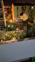 The glimmery water can is the charging house, and it spews out the narrow LED lights, and showers them over your plantlings, making your lawn look heavenly.